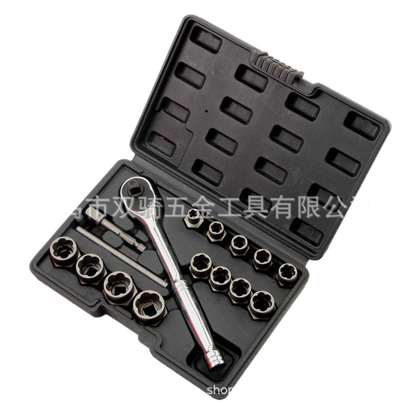 16-Piece Nut Extractor Set With Ratchet Metric Socket Tool Kit For Machine Repair Broken Nut Remover Industrial Grade