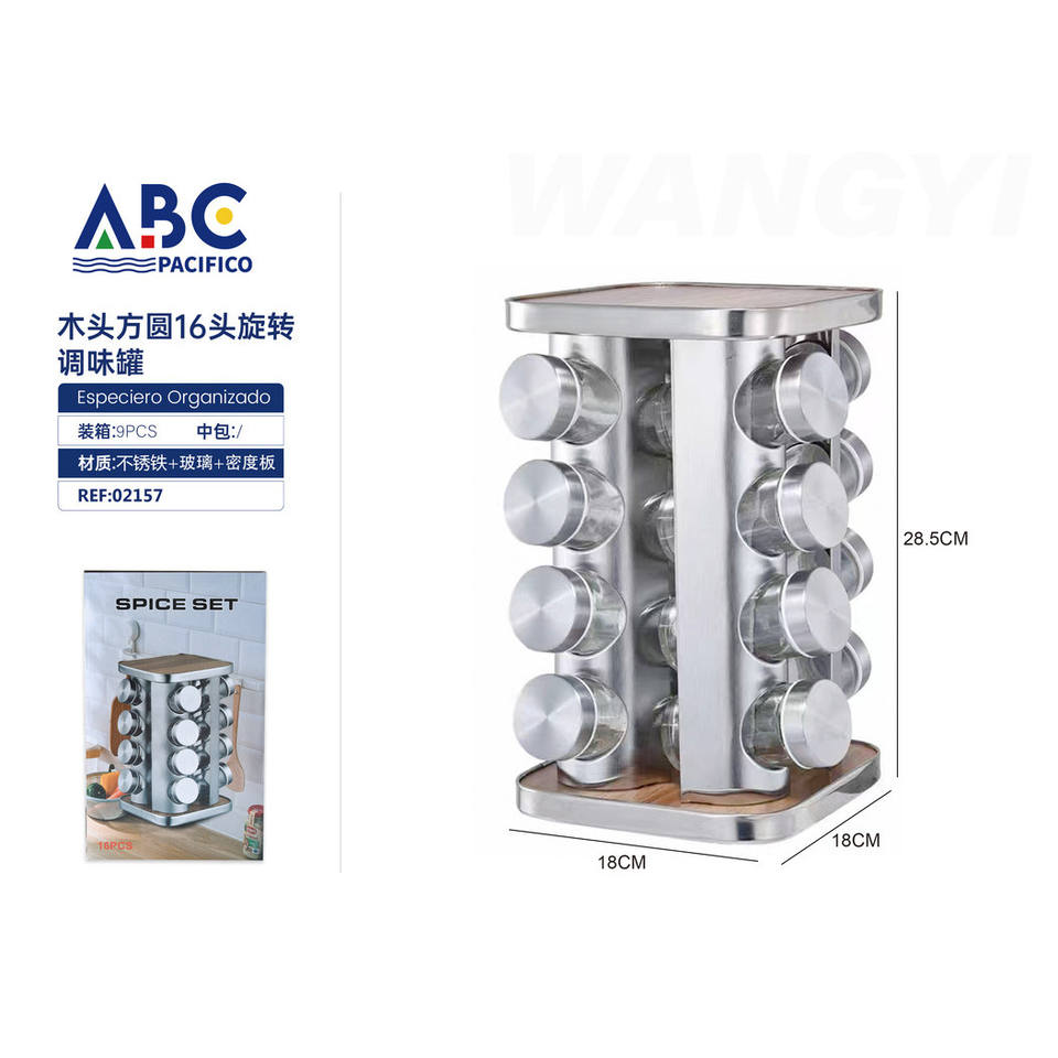 16-Piece Square Luxury Wooden Storage Jars Rotating Lids Eco-Friendly Condiment Containers for Kitchen Use Customizable Logo
