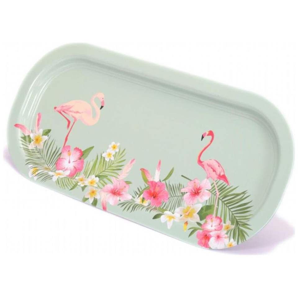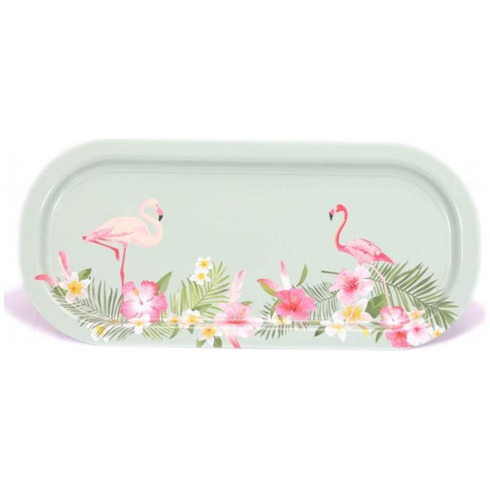 160x350 mm Elegant Rectangular Wood Serving Tray Pink Flamingo Illustrator Blue Background Featuring Mother Pearl Pearl Material