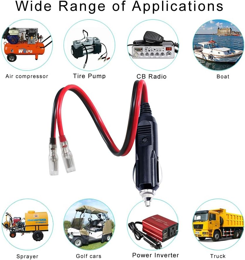 16AWG Cigarette Lighter Adapter Fused Replacement Cigarette Lighter Male Plug 12 Volt Plug with Led Light