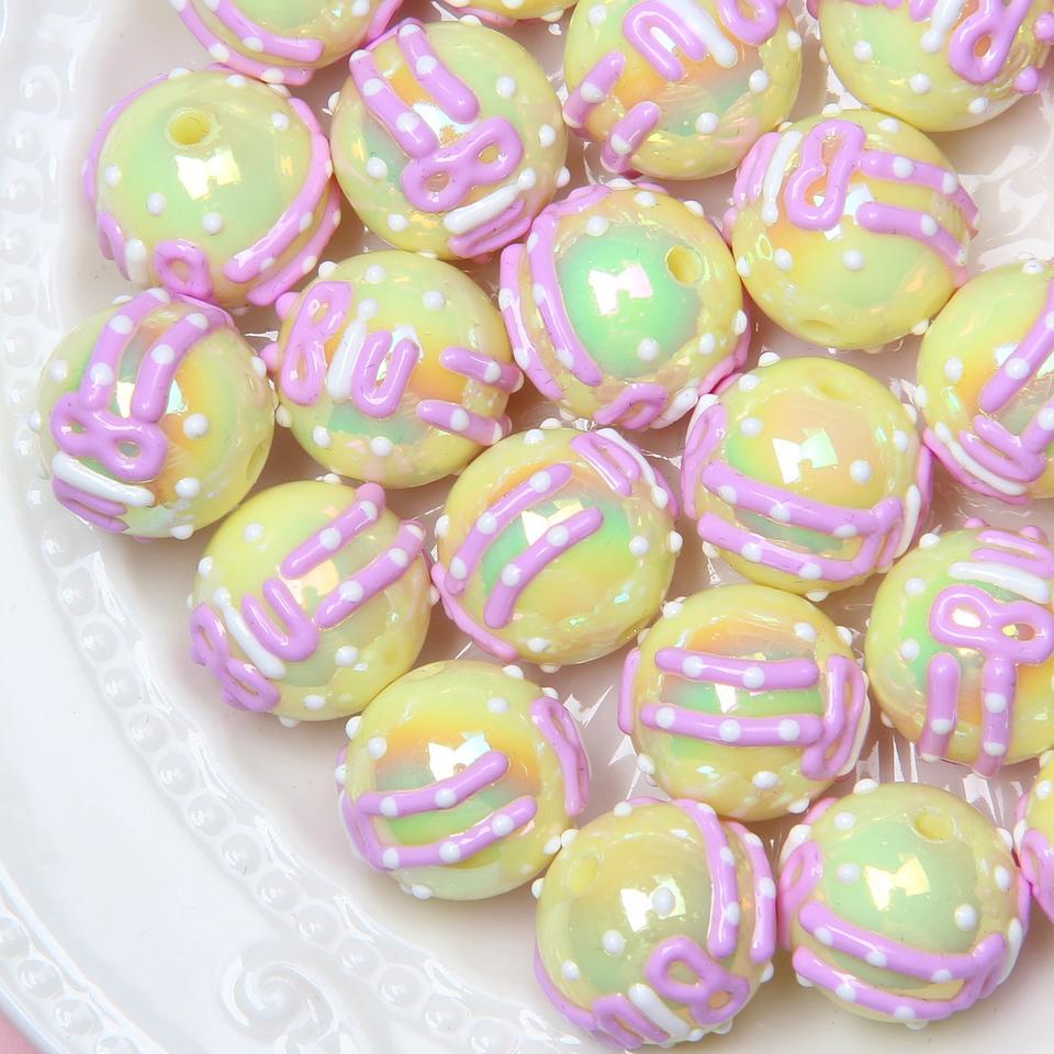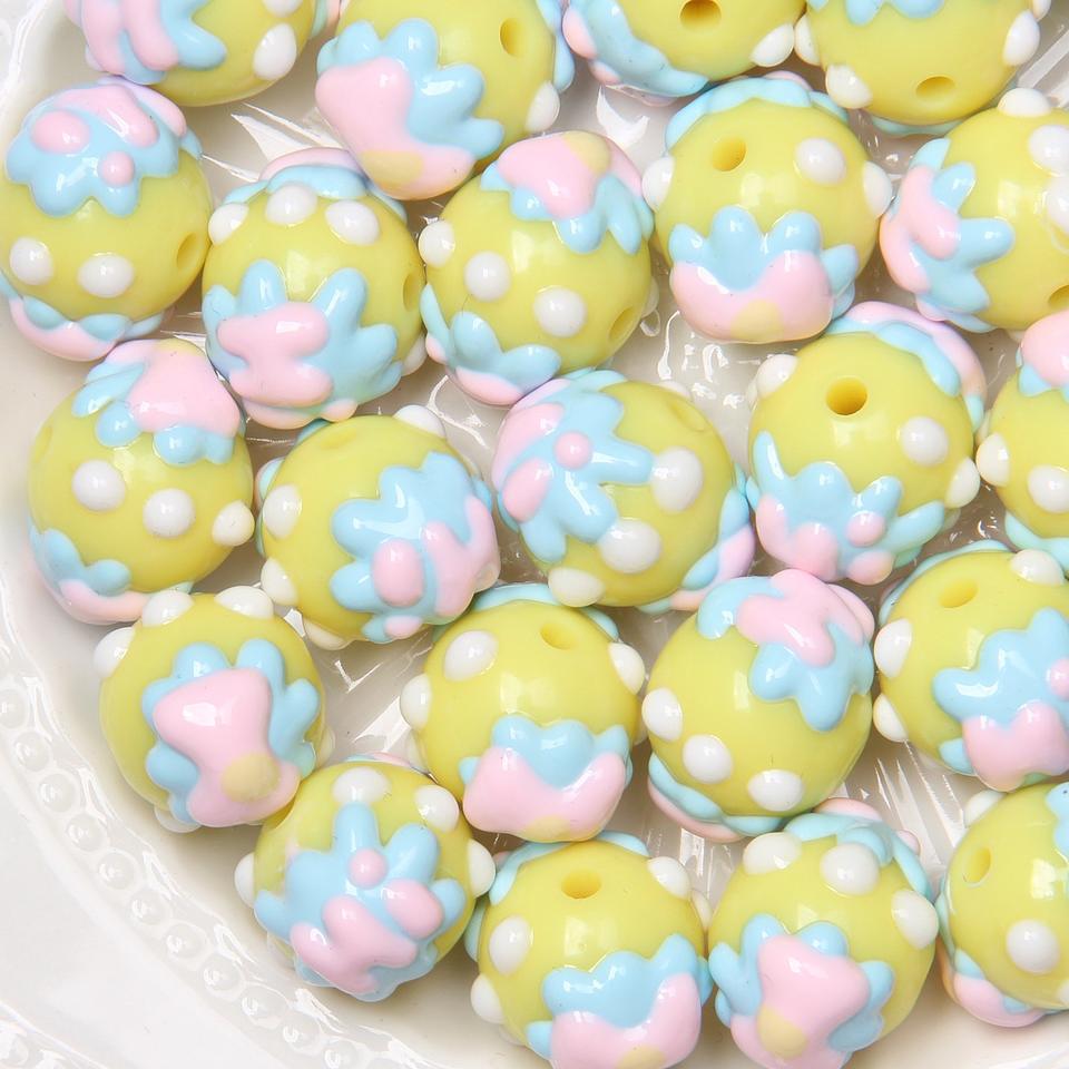 16mm Plastic Beads Summer New Hand-painted Flower Letter DIY Bracelet Car Pendant Material Acrylic Small Fresh