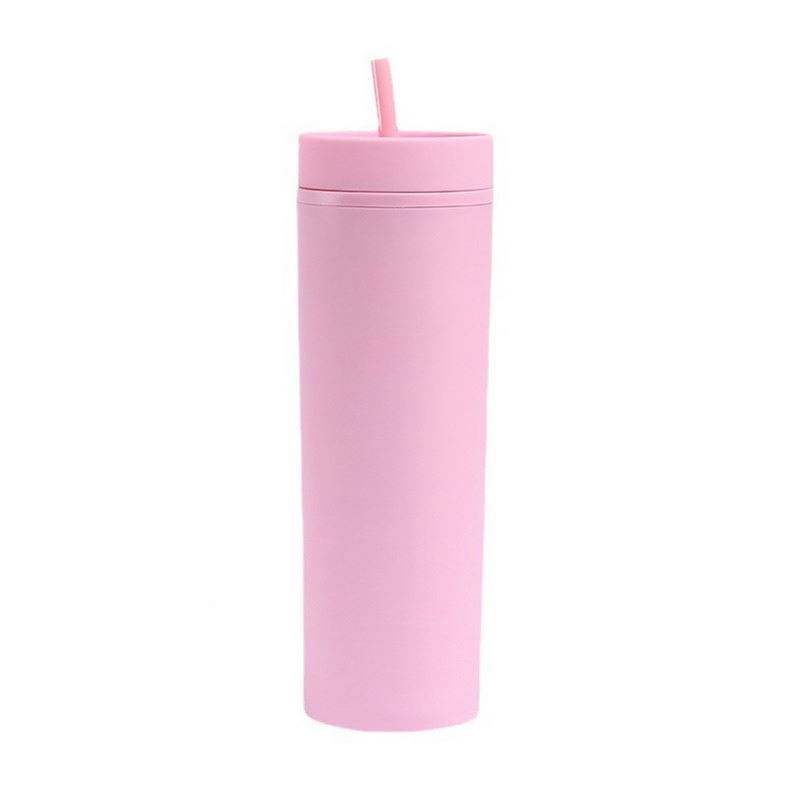 16Oz Acrylic Skinny Tumbler Matte Plastic Cup Double Wall Milk Mug Eco-Friendly Colorful Slim Tumblers With Straw