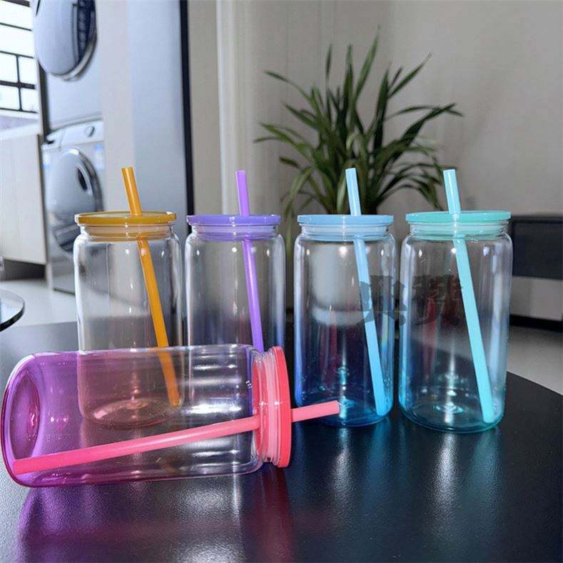 16Oz Colorful Dye-Plastic Straw Cup Hot Cross-Border High Mason Mug Boys Girls Bamboo Plastic Beer Can