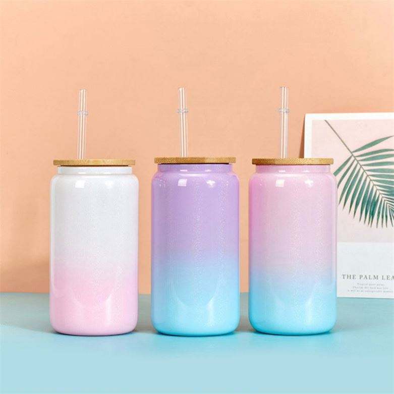 16Oz Holographic Beer Can Sparkle Shiny 16Oz Shimmer Glitter Plastic Can With Pp Lid for Sublimation