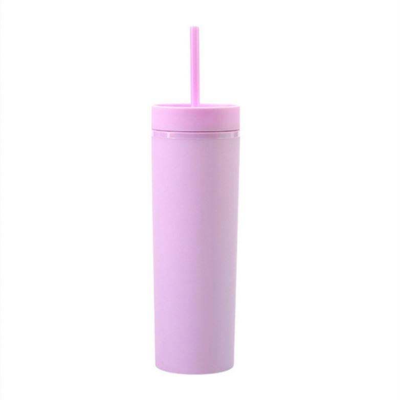 16Oz Skinny Tumbler Double Walled Acrylic Matte Plastic Bulk Tumbler With Straw and Lid Eco-Friendly Water Bottles