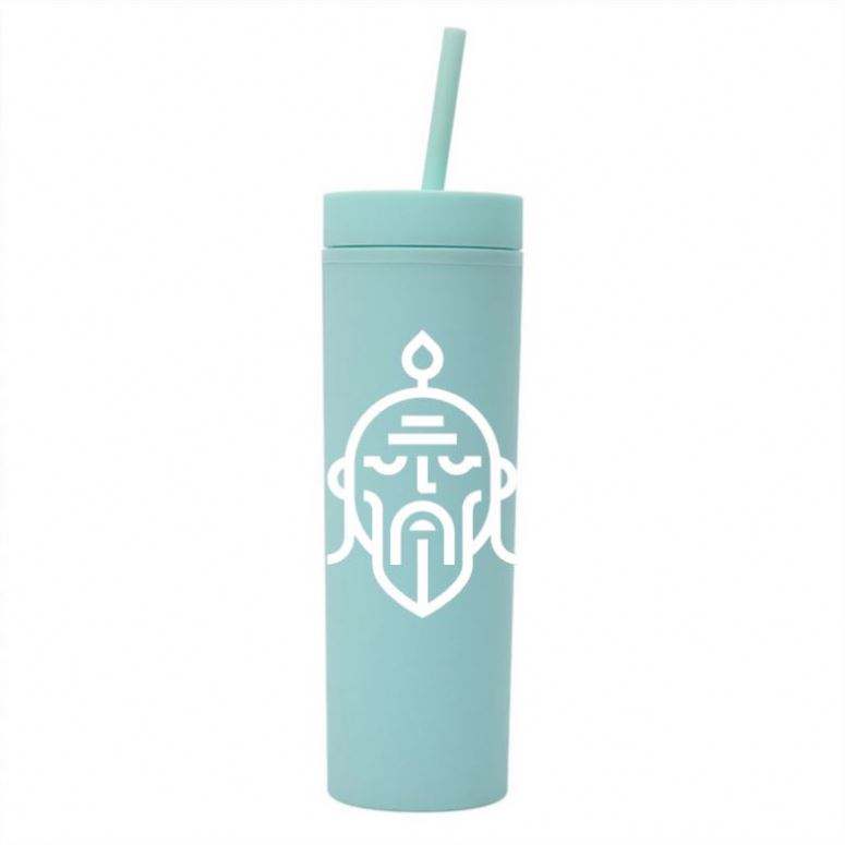16Oz Straight Skinny Colored Matte Black Plastic Double Wall Coffee Tumblers With Lid and Straw
