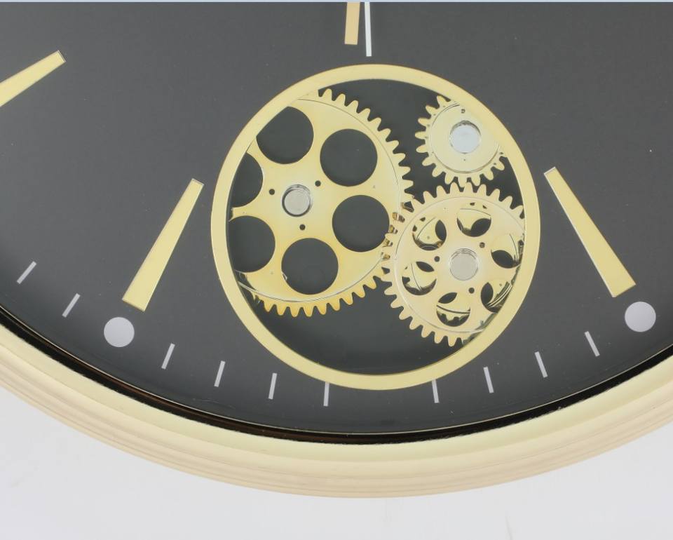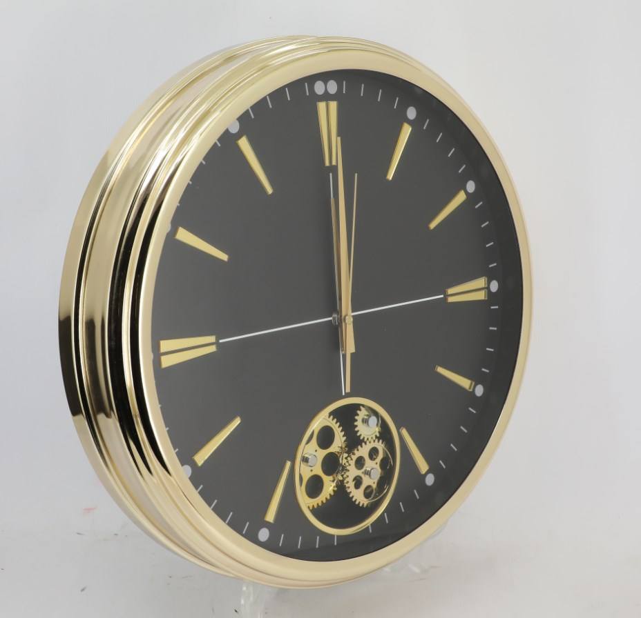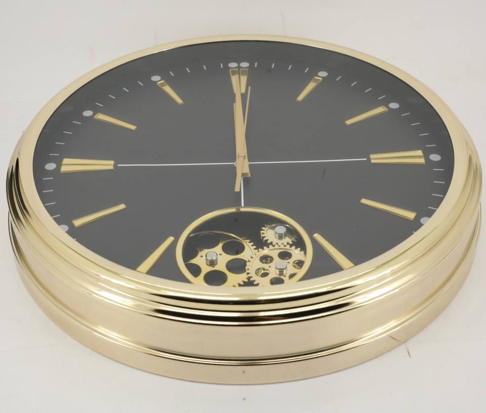 16inch Large Oversize Battery Operated Roman Numeral Modern Metal Gold Color Decorative Wall Clock with Real Moving Gears