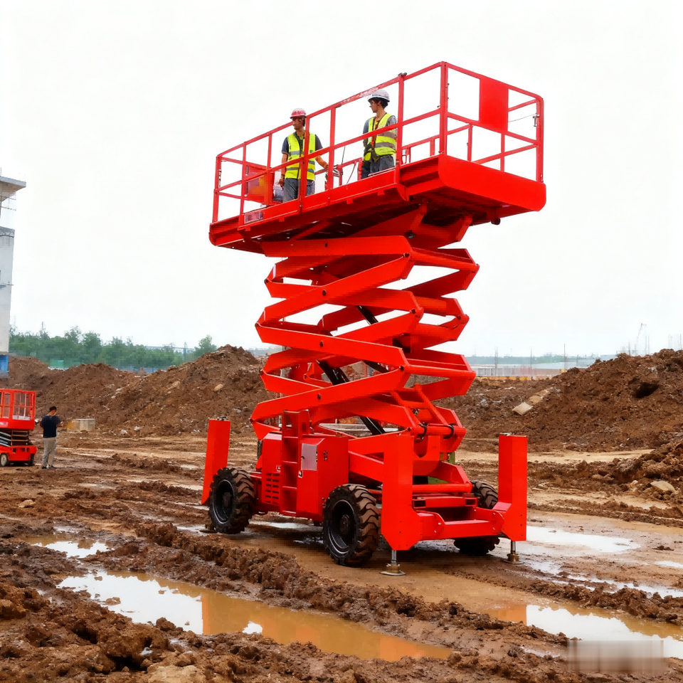 16m Self-propelled 4WD Scissor Lifts 680kg Rough-Terrain Aerial Lifting Woke Platform