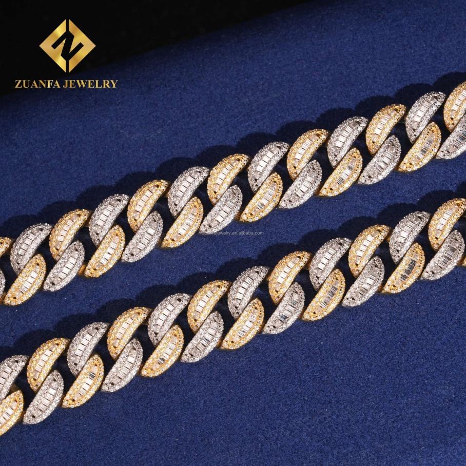 16mm 3Rows Moon Shape Fashion Iced Out Rapper Man Luxury Hip Hop VVS1 Baguette Moissanite Diamond Miami Cuban Chain & Bracelet
