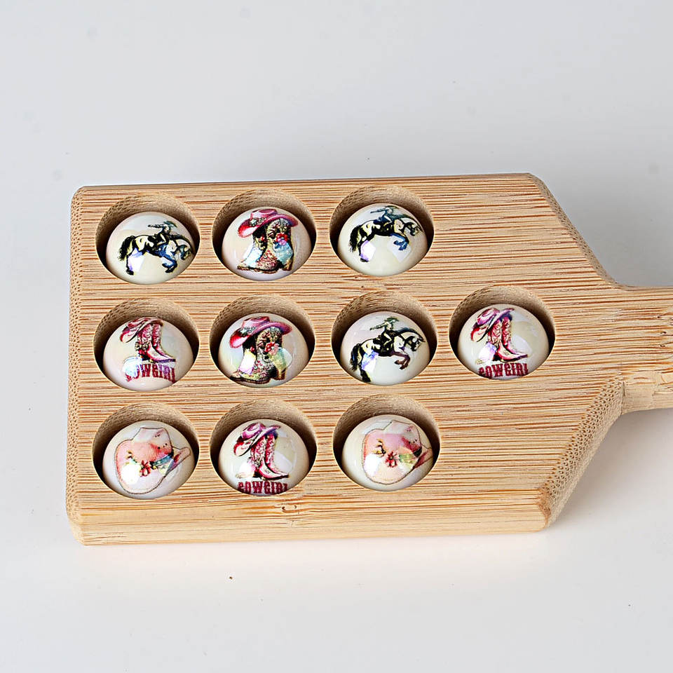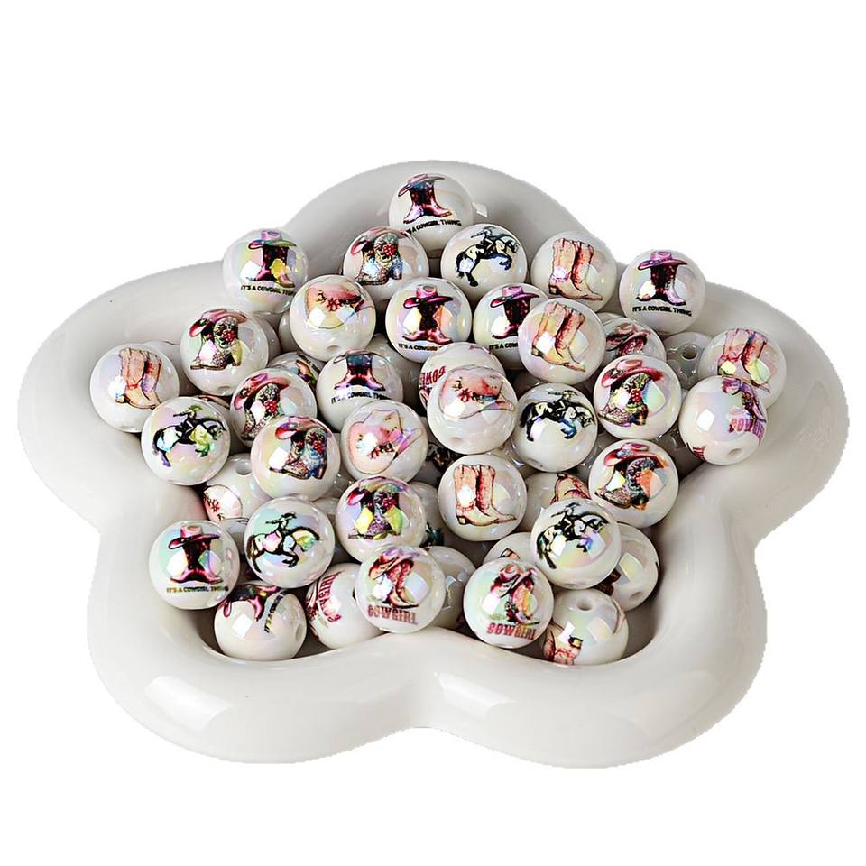 16mm Acrylic Printed Mixed Color Fashionable Women's Western Cowboy-Style Round Bead DIY Phone Stringing Pen Accessory Holes