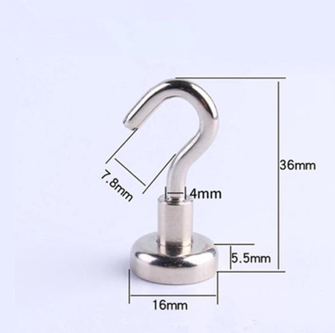 16mm Permanent Strong Neodymium Hook Magnet Heavy Duty Magnetic Hooks Key Holder Kitchen Office Industrial Hanging