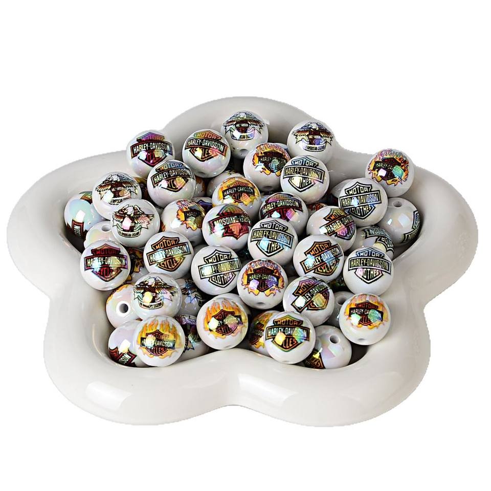 Product name:16mm acrylic printed sports straight-hole round beads