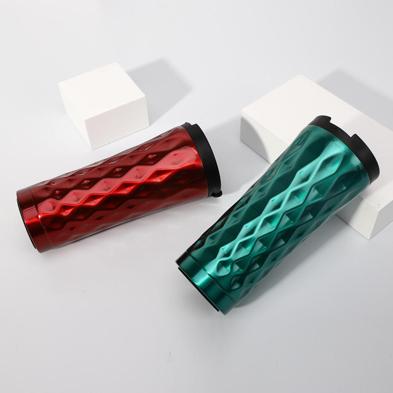 16oz 17oz 500ml New Design Stainless Steel Insulated Tumbler Modern Diamond Shaped Double Wall Coffee Cup Vacuum Thermos Water