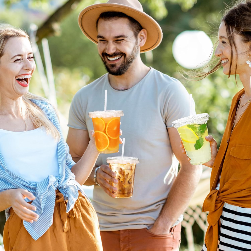16oz Clear Plastic Cups with Lids Disposable Iced Coffee Cups with Lids Sturdy Food Safe lemonade cups for Cold Drinks BPA FREE
