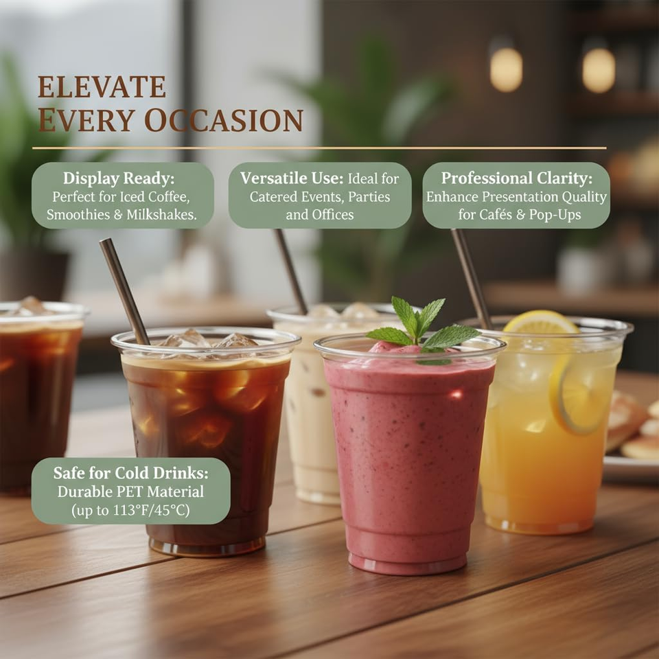 16oz Eco-Friendly BPA Free PFAS Free Biodegradable Leak Proof Modern Clear PET/PLA Disposable Cold Drinking Cups for Parties