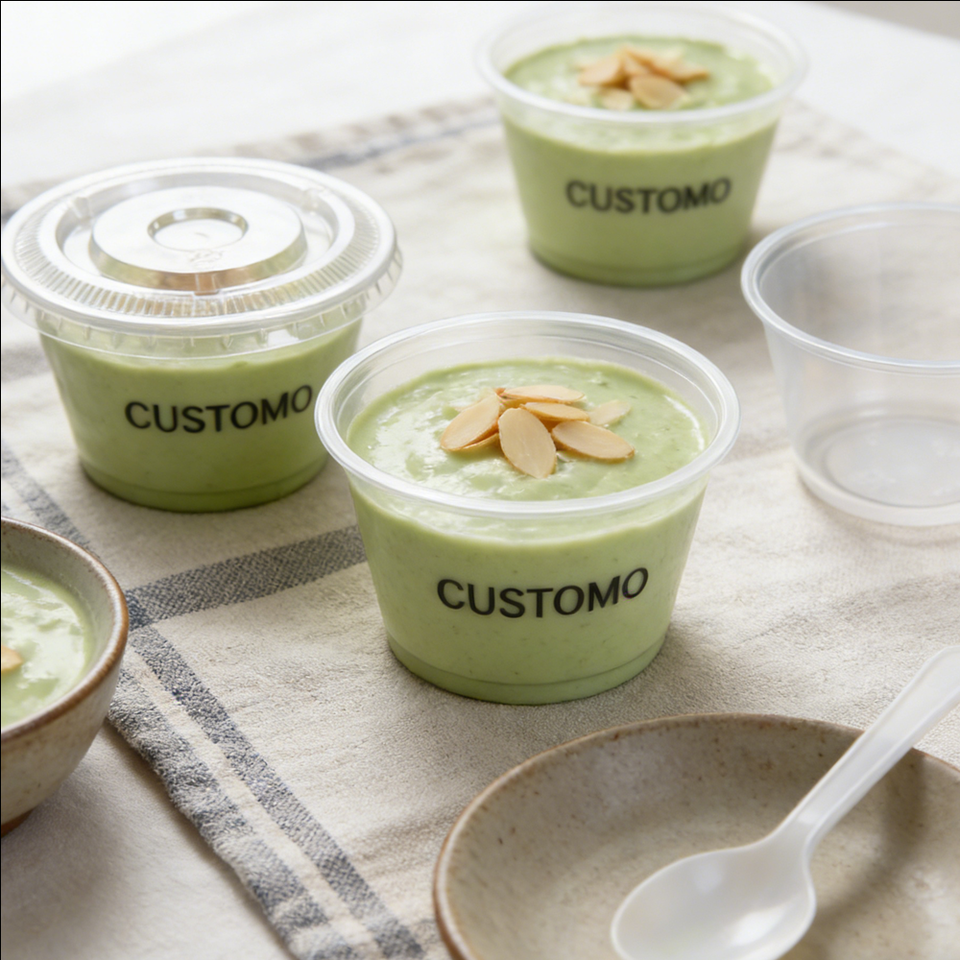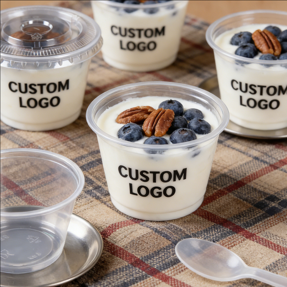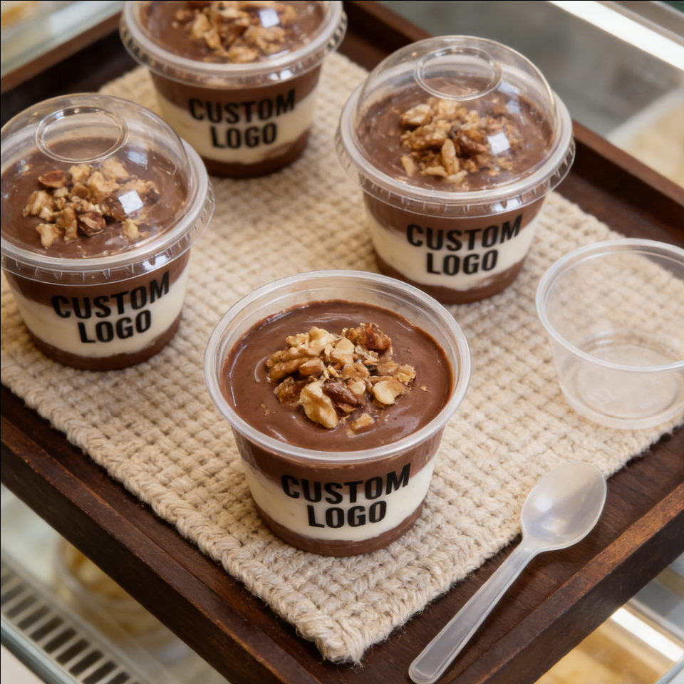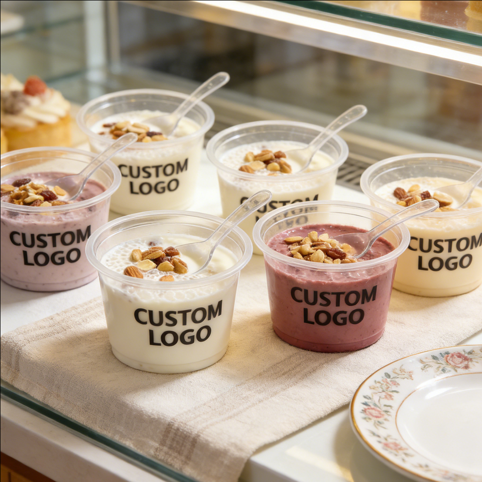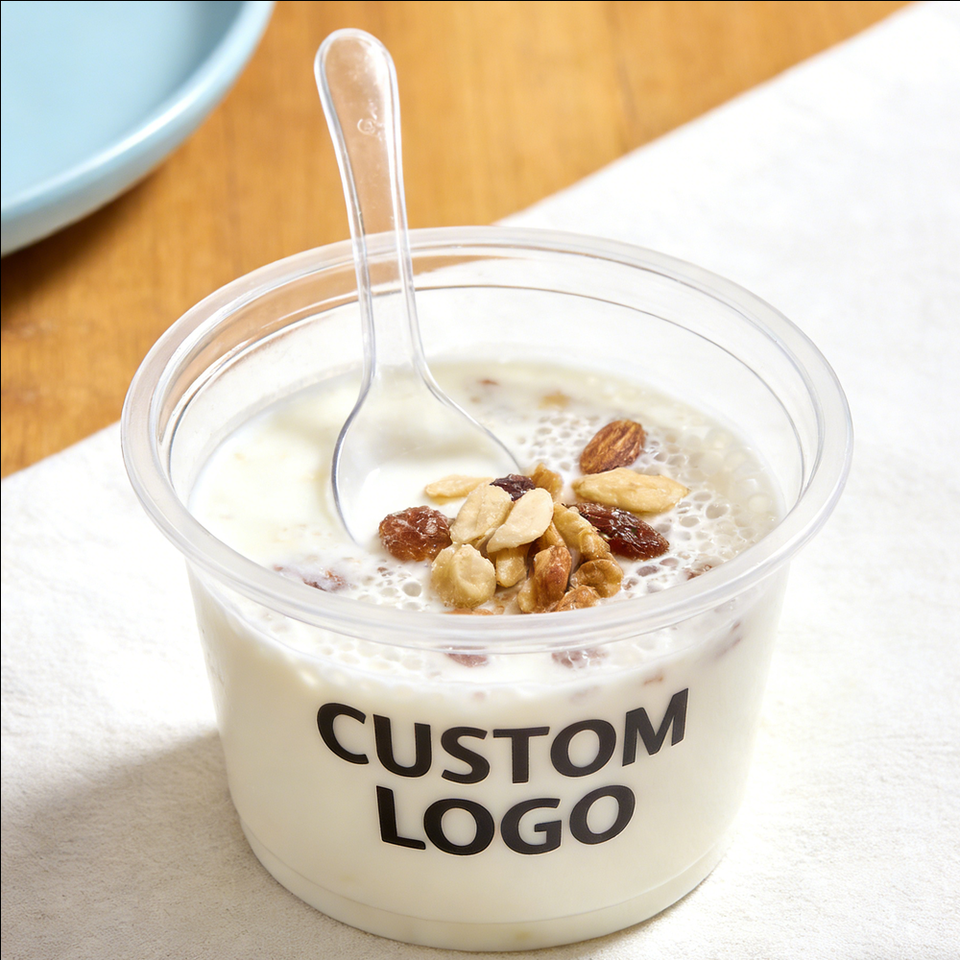 16oz Single Wall 90mm Dessert Yoghurt Plastic Cups Bowls with Lids and Spoon