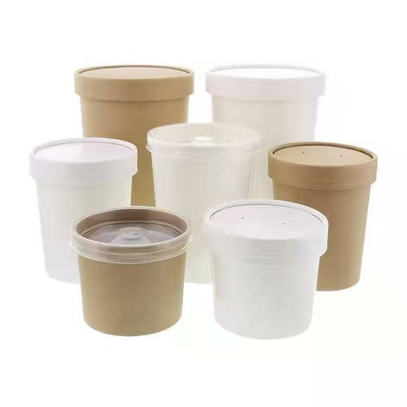 16oz Single Wall Disposable Craft Paper Microwave Soup Bowl and 750ml Paper Bucket with Paper Lid for Noodle and Cookie