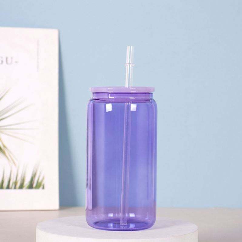 16oz Transparent Sublimation Blanks Glass Beer Can Cup Tumbler with Colored Lids