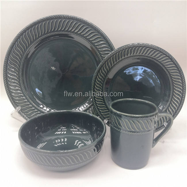 Product Name:16 pcs Shiny colorglazed embossed Stoneware Dinnerware Set