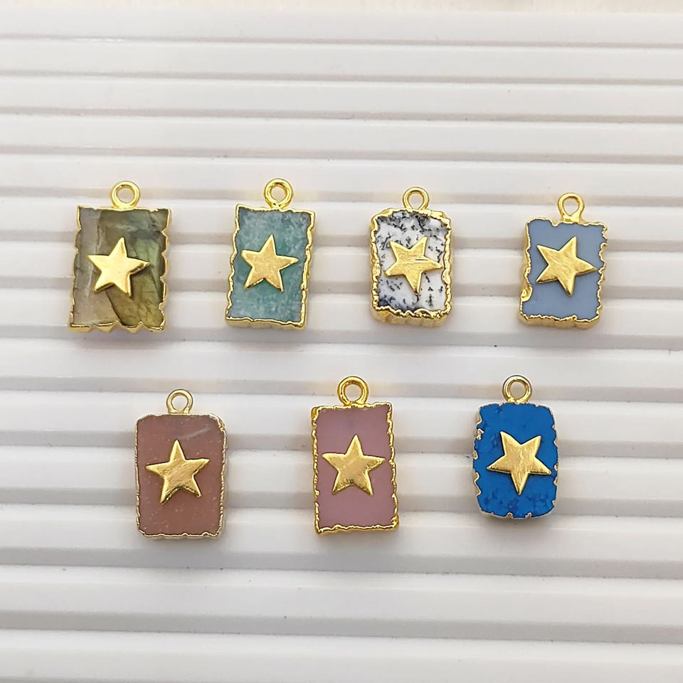 16x12mm Rectangle Gemstone Slice Pendant Gold Plated Electroplated Charm Handmade Jewelry Making Supplies Wholesale