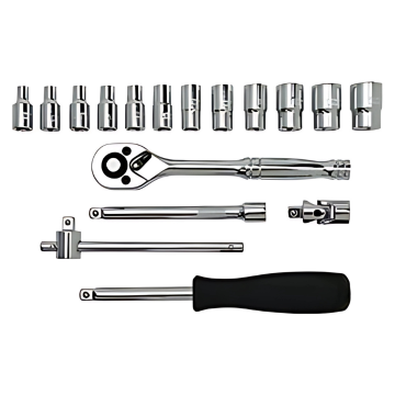 Hand Tool, ratchet handle, extension bar, socket, Spark plug socket, spinner handle, Sliding T bar, Universal jointtool includes