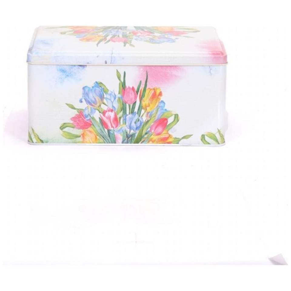 Kontensan EF05830 170x260x120 mm Rectangular Metal Storage Box with Slip Lid 5.1L Capacity Tulip Flower Design for File Cabinets