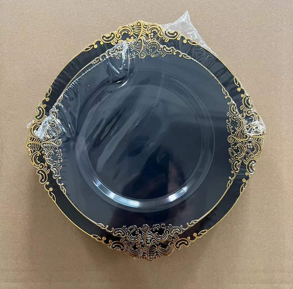 175PCS Black and Gold Plastic Plates Set Include Dinner & Dessert Plates Cup, Cutlery Set Napkin Wedding Parties