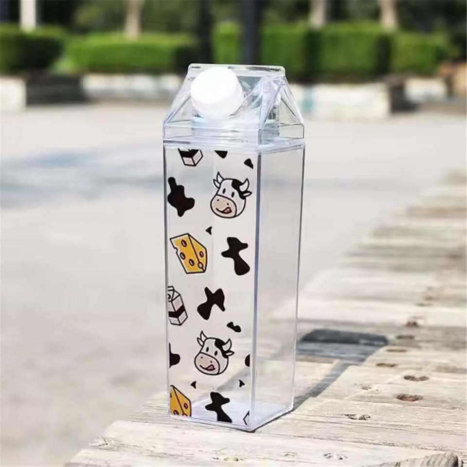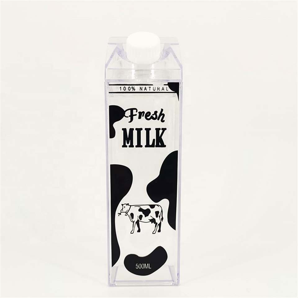 17Oz BPA Free 500Ml 1000Ml Plastic Clear Square Pink Transparent Colored Minimalist Party Leak-Proof Milk Box Carton Bottle