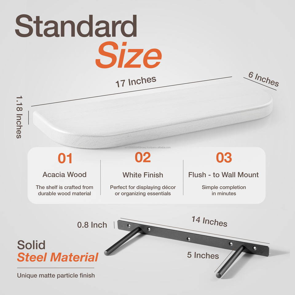17inches White Wall Shelves Floating with Metal Bracket with Hiding Place Home Decoration Items for Living Room Minimalist