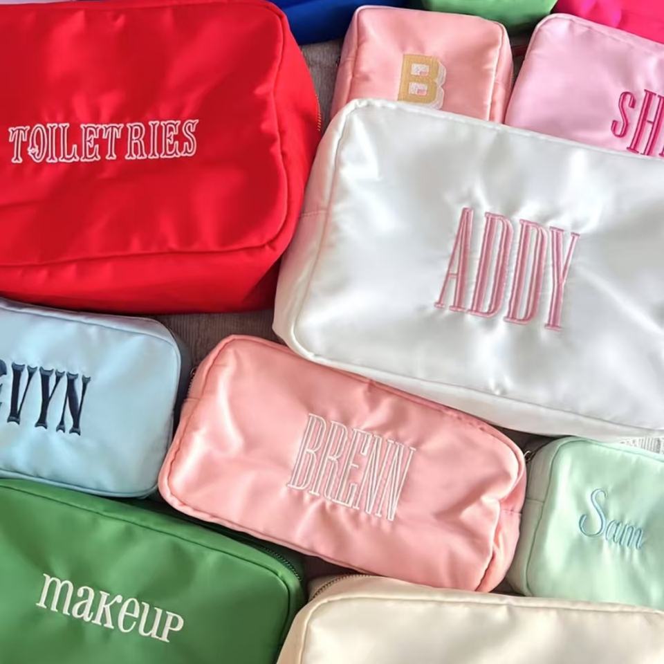 embroidery letter cosmetic bagPattern Type