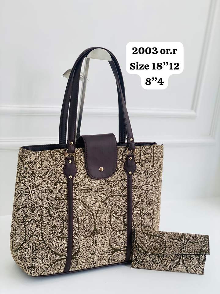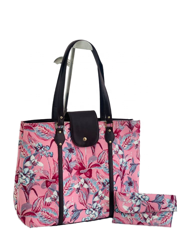 18\"12 Pouch Size Women's Tote Bag 8\"4 Handlock Print Fabric Model No 2003 Handmade India Beach Usage Laptop Handbag
