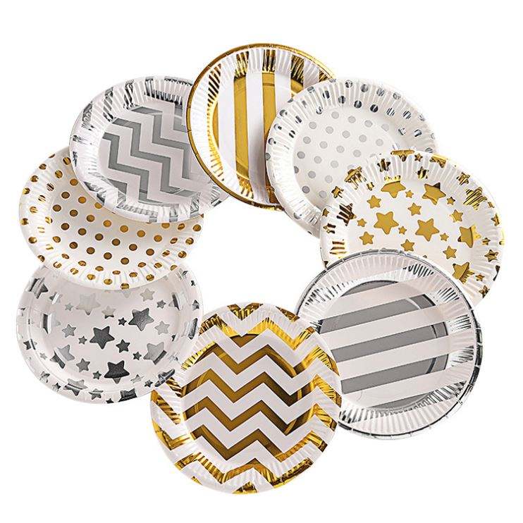 18*18cm Foil Gold Dot Birthday Wedding Graduation Party Supplies Decoration Cake Dish Disposable Paper Plates Baby Shower Favor