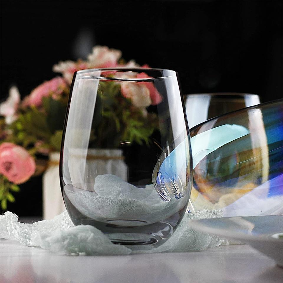 18.5oz Ion Electroplated Egg-Shaped Tumbler Crystal Glass Stemless Red Wine Glasses with Crystal Clear Color