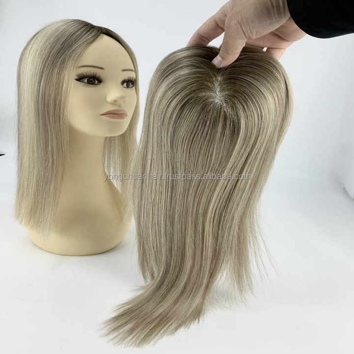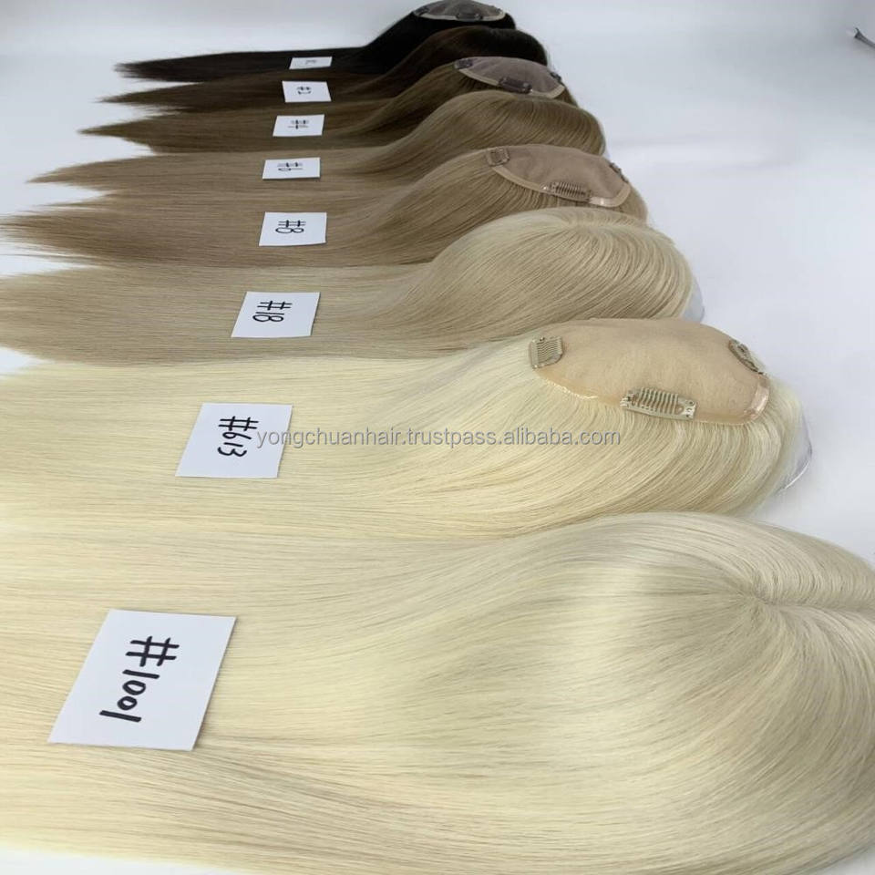 18/613 human silk base hair topper with bangs mini scalp women black straight clipless 24 inches european