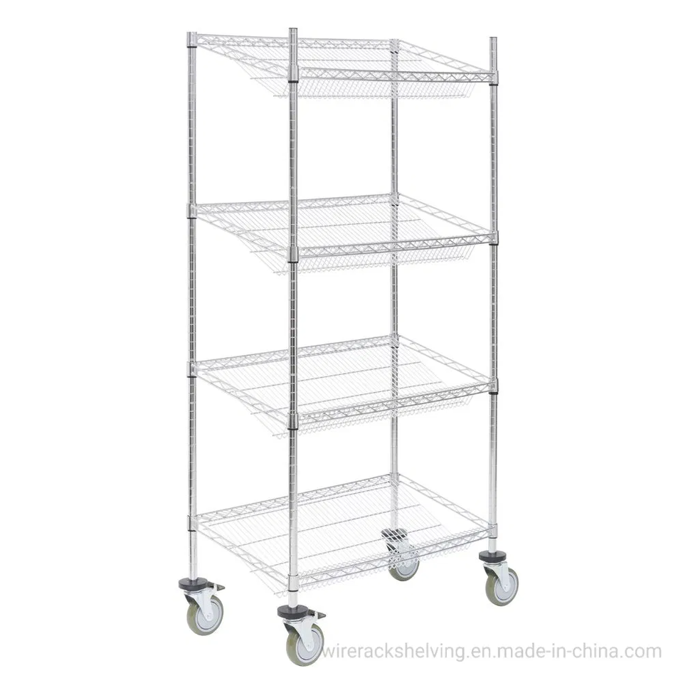 18"D X 36"W X 24"H Slanted Wire Basket Industrial Fruits Display Storage Shelving Corrosion Protection Steel Material Chrome