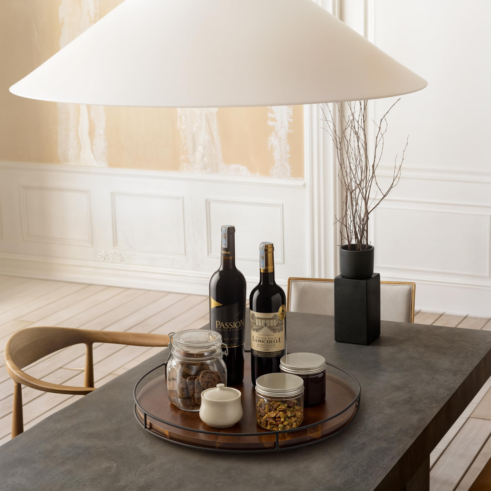 18\" Eco-Friendly Acacia Wood Turntable Tabletop Wooden Cheese Board and Board Trays with Handles Serving Tray
