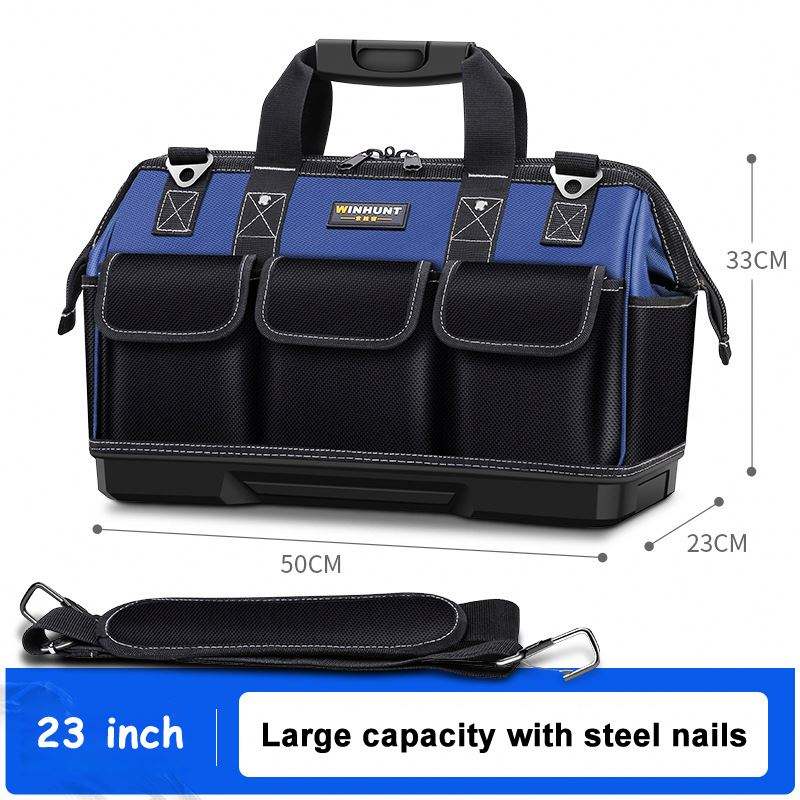 18" Heavy Duty Wide Mouth Waterproof Strong Molded Base BAYM ToolBag Organizer Zipper Closure Adjustable Shoulder Strap OEM 300