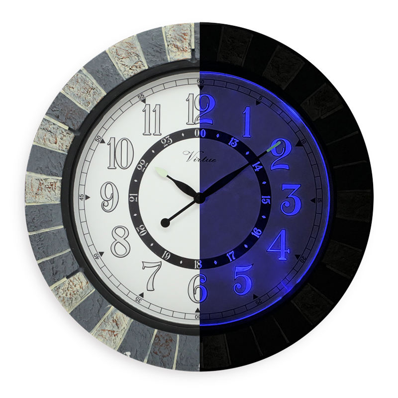 18 Inch Large Outdoor Wall Clock with Night Light for Garden Decoration with Thermometer and Humidity Waterproof
