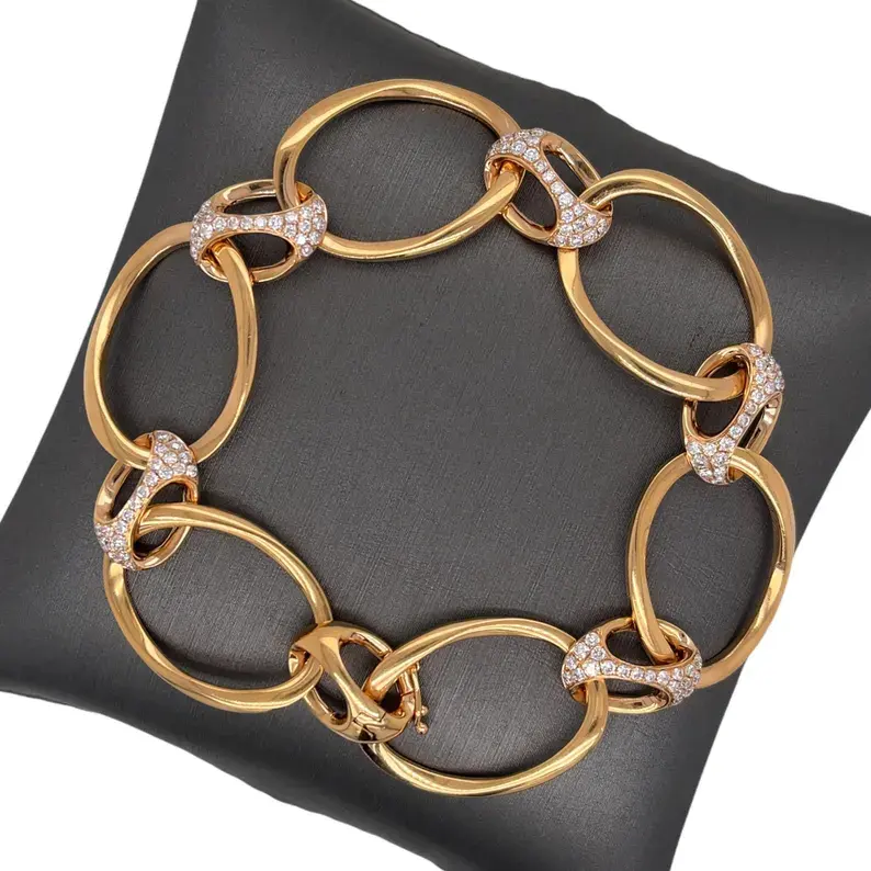 18K Rose Gold Twisted Oval Link Mariner Bracelet Delicate Hand Fashion Jewelry with Shiny Gold Finish