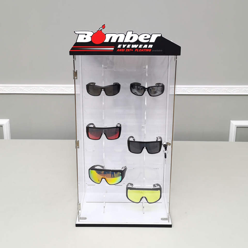 18 Pairs Customized Modern Sunglass Display LED Light 9-Tiered Desktop Unit for Retail Glass Store Eyewear Display Easy Assembly