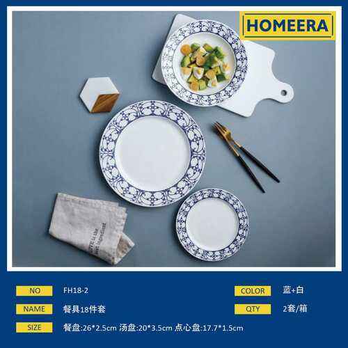 18-Piece Eco-Friendly Ceramic Dinnerware Set Porcelain Plates Bowls for 6 Persons European Design for Dining Dessert for Hotels