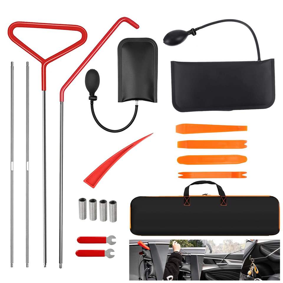 18-Piece Stainless Steel Emergency Tools Set Long Distance Car Key Hook Triangle Handle Yellow Warping Plate Wedge Airbag Wrench