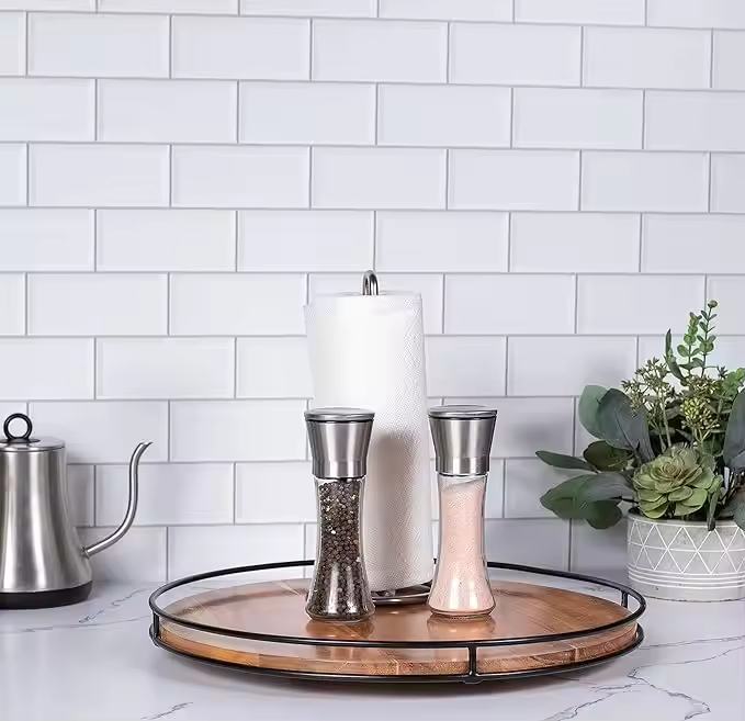 18 inch Acacia Wood Round Rotating Wooden Turntable Lazy Susan Wooden Swivel Tray