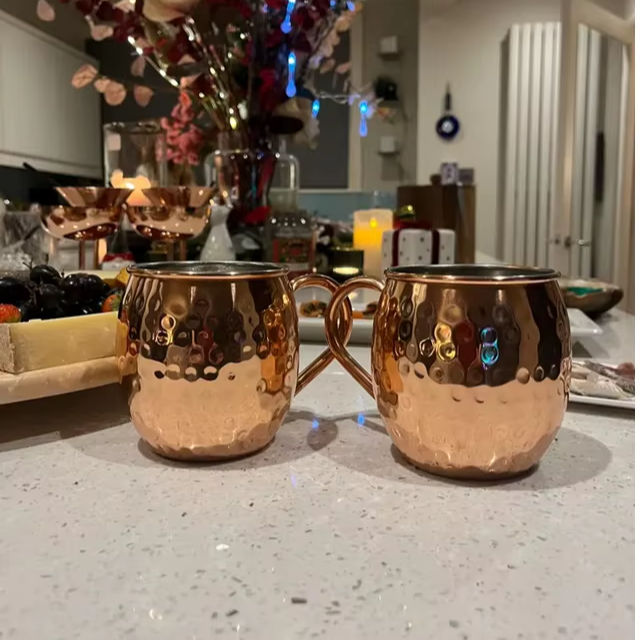 18 oz Religious Model Moscow Mule Mugs Hammered Copper 304 Stainless Steel Lining Gold Brass Handles Party Cold Drinks Beer