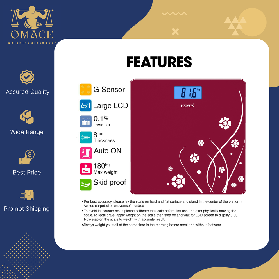 180 kg Capacity Superior Quality Made in India Stylish Electronic Digital Tempered Glass Personal Weighing Scale 100g Accuracy