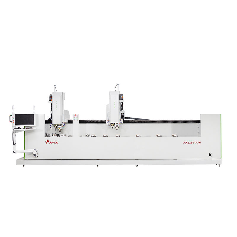 18000rpm High Speed JUNDE ZX35006 High Precision CNC Aluminum Profile Drilling Milling Machine 3000mm Travel Dual Tool Holder