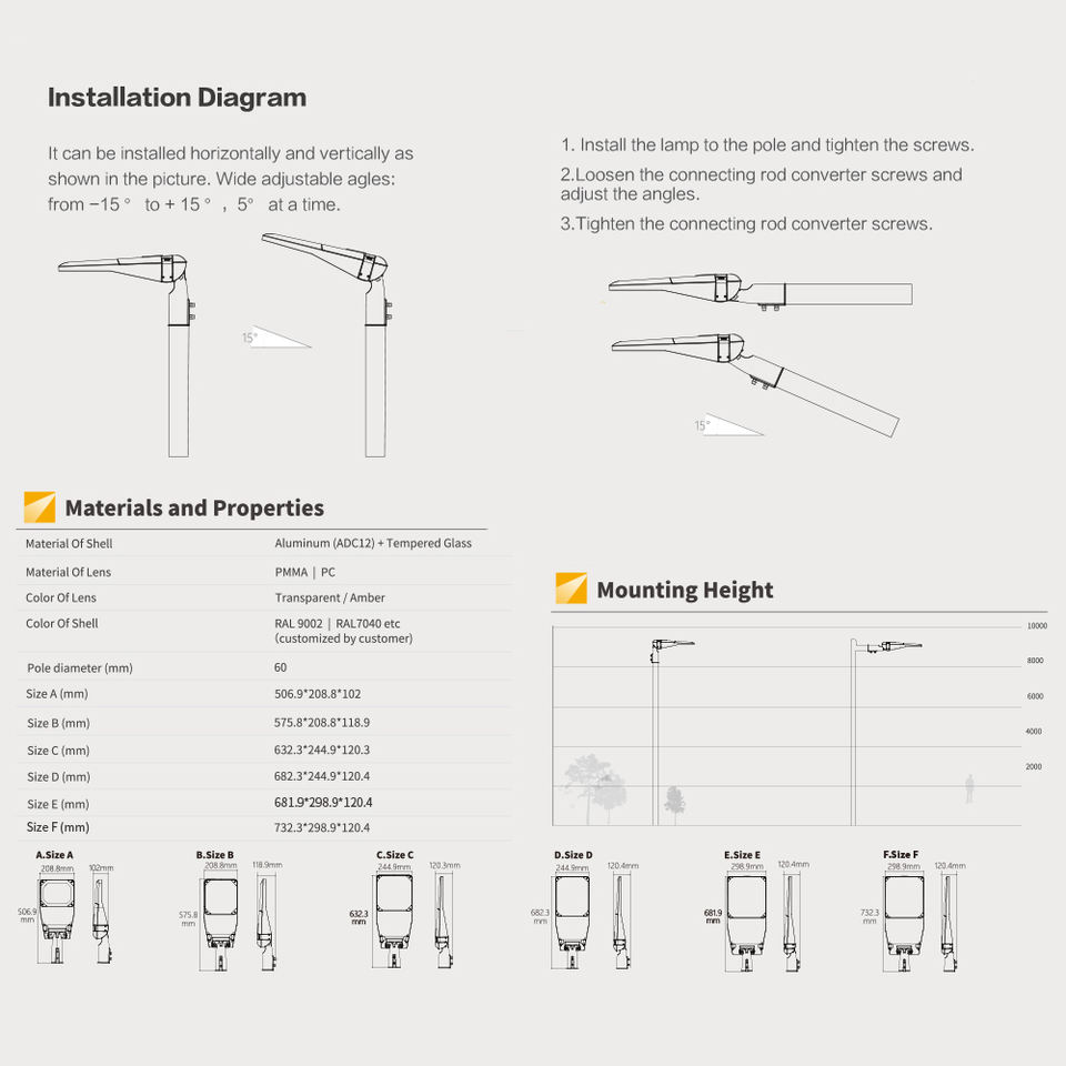 180W LED Street Luminaire Aluminum Body Photocell SMD Chip IP66 for UL ETL ROHS SAA Certificates Outdoor ABS for Street Road Use