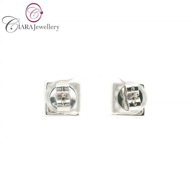 18K AU750 WHITE GOLD NATURAL PRINCESS CUT DIAMOND INVISIBLE SETTING HALO EARRING