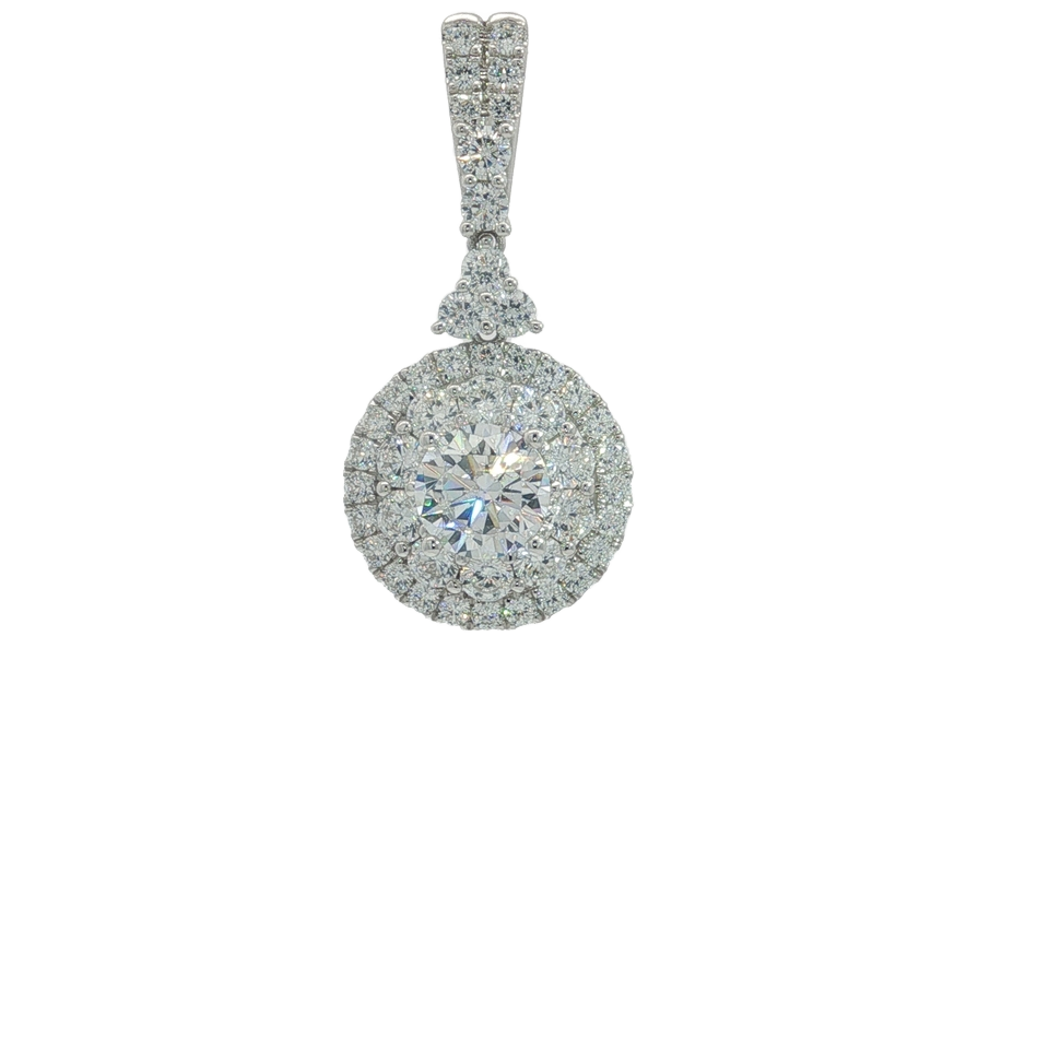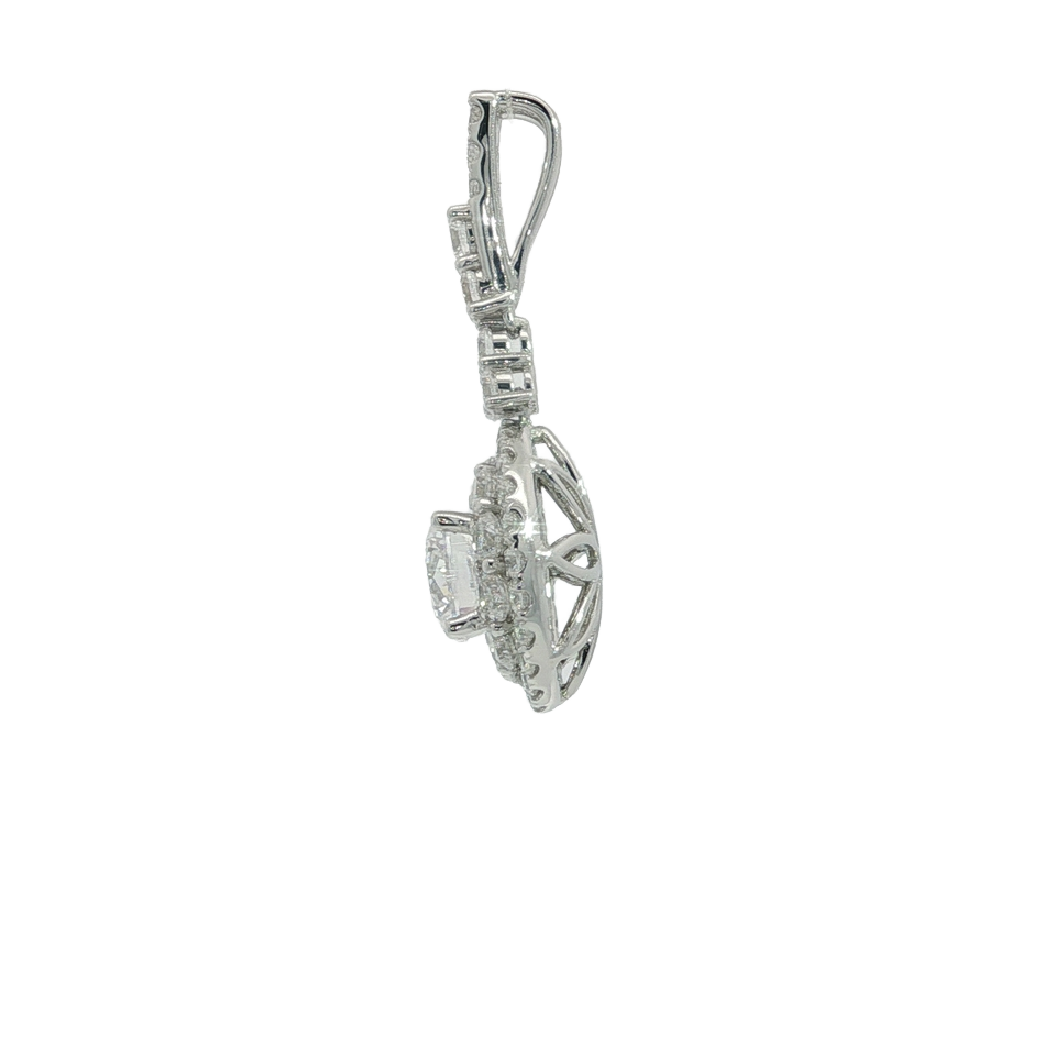 18K Gold 1 Carat Diamond Halo Setting Empty Center Pendant Mount for Lab Grown Diamonds for Gift Charm Pendants