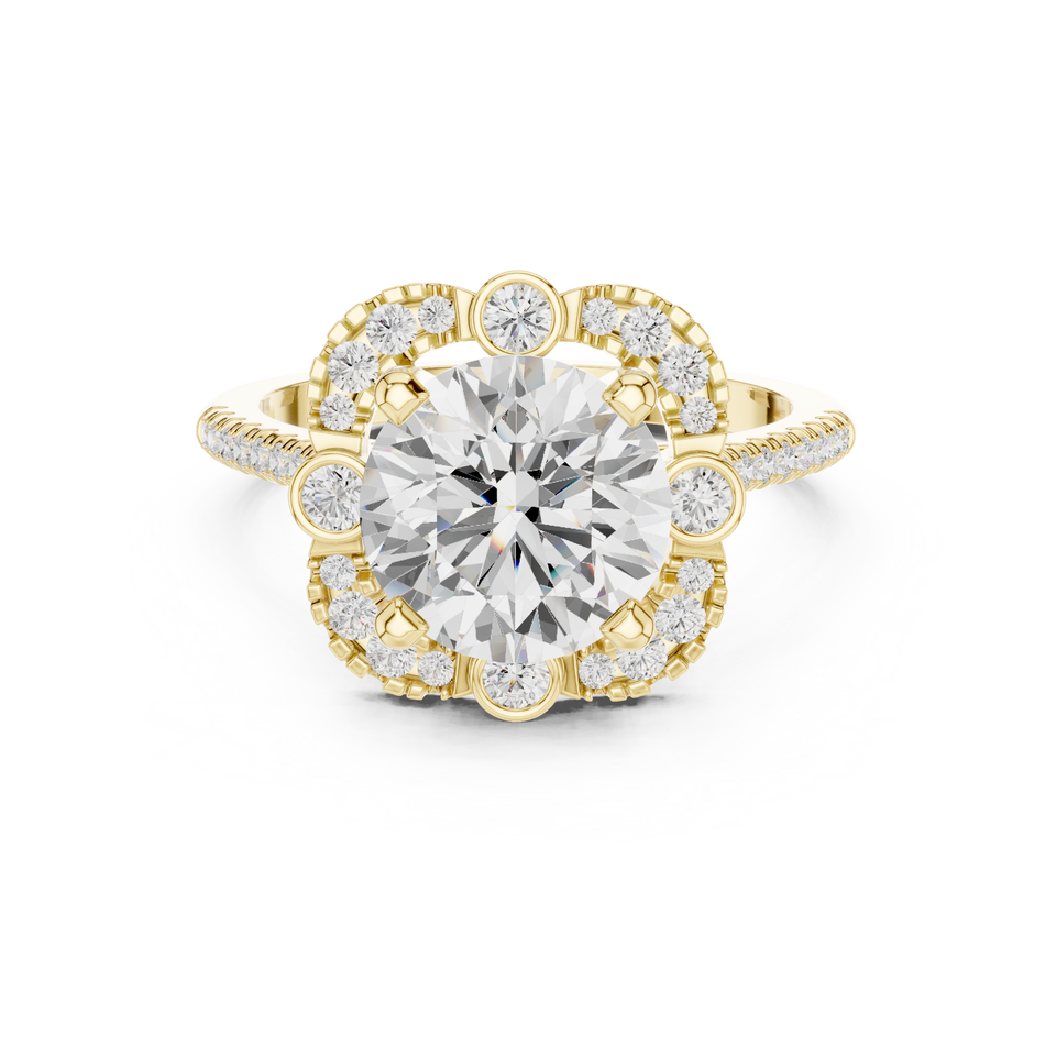 18K Gold Designer Ring with Floral Diamond Accents